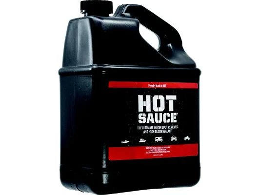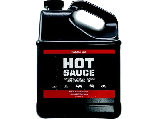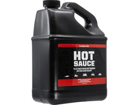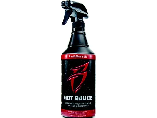 Hot Sauce, is a spray detailer on steroids. The unique spray on, wipe off formula has the strength to cut through hard waterspots WITHOUT stripping your wax. Hot Sauce contains sealants to help maintain your wax coat while leaving a streak-free, showquality shine.