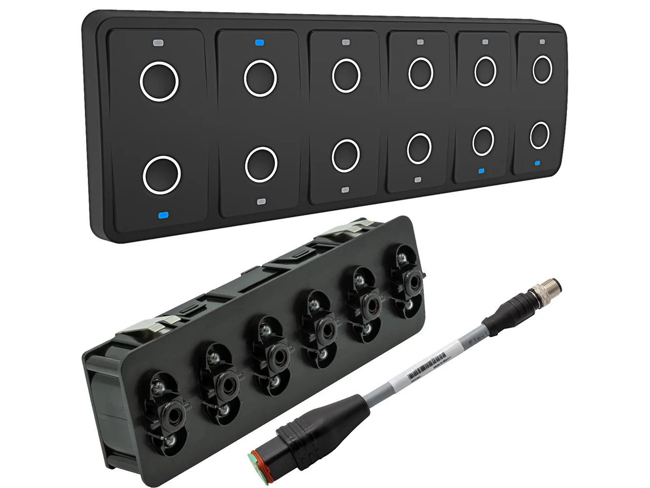 The CKM12 offers significant advantages over traditional electromechanical switches, such as a longer actuation cycle (1,000,000), reduced wiring harness, and reduced installation time. The CKM12 is sold off the shelf in two configurations and includes a CKM to NMEA 2000® Adapter Cable.