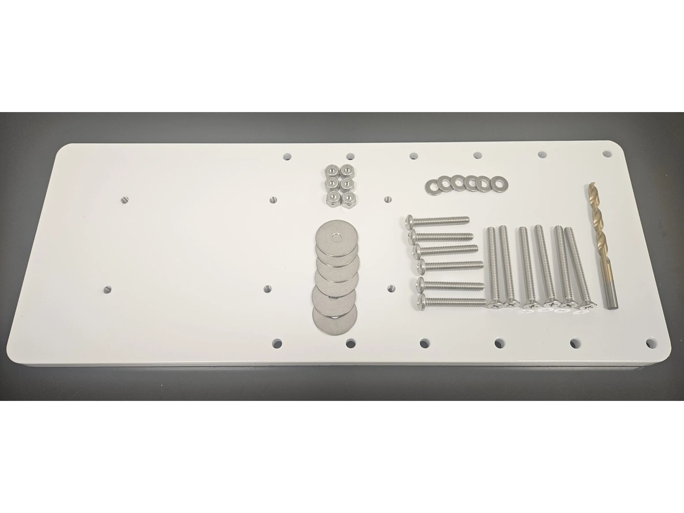 Powder-coated aluminum mounting plate. 1/2in thick 7in x 18in in white.