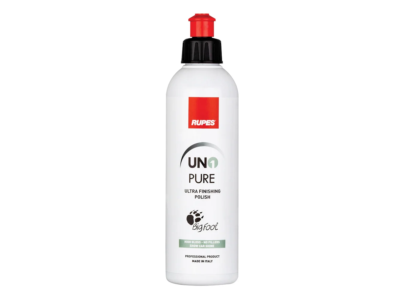 UNO PURE is a universally compatible, ultra-fine abrasive polish designed for use on all tool types, including Rotary, Random Orbital, or Gear-Driven Orbital. The proprietary formula developed and blended in-house by RUPES uses the latest in abrasive technology to produce the highest possible optical clarity and reflectivity when used with RUPES BigFoot polishing system tools and pads. UNO PURE is ideal for very soft or haze-prone paints or can be used in jeweling applications to create a show car finish, even on dark colors. The absence of fillers, ease of use, easy wipe-off, ensure the best user experience, and body shop safe formulation make it the ideal solution for a variety of applications.