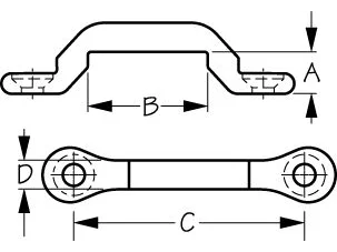 Commonly used to hold down batteries, fuel tanks, ice chests, life rafts, dinghies, etc., these tie down eye straps can be used for a multitude of applications. Their flat, low profile makes them ideal for webbing. Constructed of corrosion resistant, forged 304 stainless steel, they install with two #10 FH fasteners (not included).