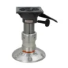 High-strength aluminum 7-1/4″ x 13″ platform travels 6″ fore and aft on self-lubricating pads. Automatically locks in the forward position. Dual-function activator handle operates slide as well as swivel, rotates 360°. Handle telescopes up to add 1-1/2″ of height to the pedestal. Universal mounting pattern: 5″ x 5″ and 5″ x 12″.